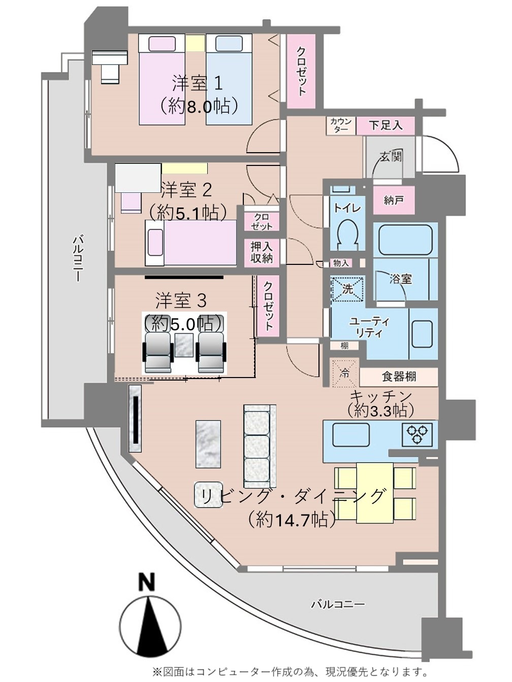 間取り | 3LDK | 専有面積 | 82.07㎡ |