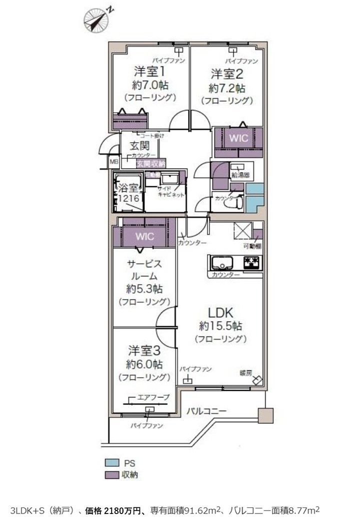 間取り 4LDK 専有面積 91.62㎡